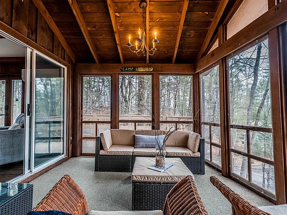 Welcome to your perfect lake-life getaway in The Bluffs at Ossipee Lake—a highly desirable community offering deeded access to a beautiful shared sandy beach, boat launch, and stunning lake views just down the road! Enjoy all the perks of lakeside living with docks and moorings available, and golf just minutes away at Indian Mound. This year-round 4-bedroom, 3-bath home blends modern comfort with classic "camp" charm, nestled just 700 feet from the lake—a quick 10-minute walk or 2-minute drive brings you to the water’s edge. Inside, the spacious two-level layout is ideal for hosting family and friends. The upper level features an open living room that flows onto a peaceful screened-in porch—perfect for sipping your morning coffee with treehouse vibes. Step onto the rear deck to grill and entertain guests. The lower level offers a cozy family room with a wood stove and walk-out access to a private patio, plus two additional bedrooms. Upstairs, you'll find two more bedrooms, including the primary suite with a private bath. This home is sold fully furnished, allowing you to move right in and start enjoying everything this lakefront community has to offer. From swimming and boating to hiking, golfing, and dining—this is your year-round retreat at the lake.