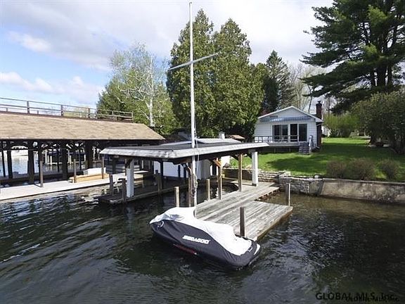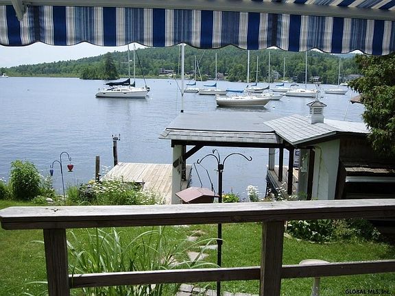 Direct Lake George Lakefront 4-Season Camp in protected bay. Deep Water Docking with covered slip for 2 Boats and 2 jetskis. Sandy bottom perfect for swimming! Clean water quality and South-Western exposure for evening sunsets. Potential to be built up if kept on the same footprint. 3 holding tanks of 1,000 gallons each which is large enough to accommodate 3 bedrooms. Additional sleeping area in boathouse. Heated water line for year-round water. Basement with oil furnace, water heater, washer and dryer and bilco door for easy access. Awesome opportunity to own a piece of Lake George!