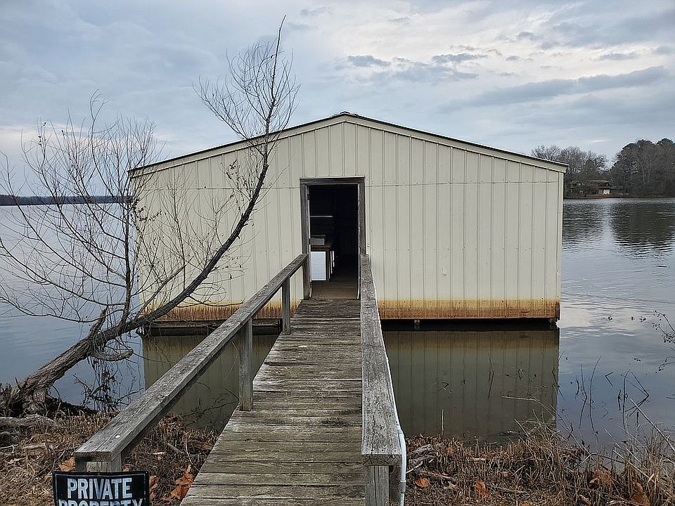 Lake front property with boat house. Beautiful location for cabin or home, located on lake Overcup in Morrilton Ar. which is a Game & fish lake, great crappie, bream , bass and catfishing lake. Quiet and serene setting. Boathouse is 24ft x 24ft , 2 wide boat slips inside the boathouse with walkway in between, each slip has independent electric garage doors. electric and water available. don't let this one get away, hard to find lakefront property with boathouse already there