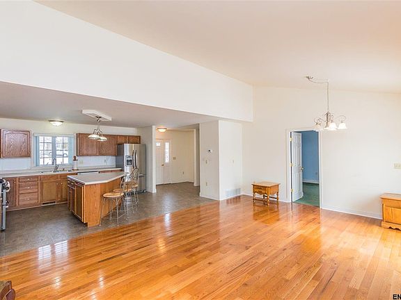 Adorable ranch in neighborhood of newer homes. 3 B/r-2 Bth, open concept living. Covered front porch, large rear deck and covered patio. This home a a gas fireplace and new hardwood floors in L/R, 2 car att garage and a large finished basement with a small kit area and 1/2 bath.. plus a large workshop area. The property is located outside the city limits but has municipal water/sewer. Priced to Sell.....