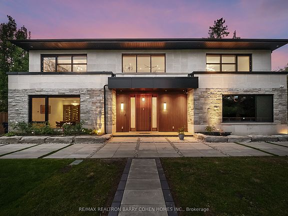 Stunning Contemporary Residence On Coveted Corner Lot In The Bridle Path Area. Meticulously Designed 4+2 Bedroom, 7 Bathroom Custom Home On Expansive Tree-Lined Property. Vast Sunken Garden-Inspired Backyard W/ Heated Saltwater Pool, Terrace Walls, Sprawling Patio & Landscaped Greenery. Commanding Indiana Limestone Exterior, 3-Car Snowmelt Driveway & Dual-Bay Garage W/ Epoxy Flooring & E/V Charger. Premium Security Film On Main & Lower Windows, Elevator Service On All Levels. Beautifully Scaled Principal Spaces W/ Soaring Ceilings & High-End Finishes, Anchored By An Elegant Open-Riser Staircase. Dining Room W/ Full-Wall Glass Wine Cellar, Large Prep Kitchen W/ Premium Appliances, Chef-Inspired Gourmet Kitchen W/ Scavolini Cabinetry, Waterfall Island W/ Seating & Breakfast Area. Exquisite Family Room W/ Walk-Out To Expanded Balcony & Gas Fireplace With Floor-to-Ceiling Natural Stone Surround. Spacious Main Floor Office & Mudroom W/ Custom Cabinetry. Second-Floor Lounge Offers Additional Entertaining Space. Gracious Primary Suite W/ Balcony, Spa-Like 6-Piece Ensuite & Walk-In Wardrobe W/ Bespoke Closets. 3 Generously-Sized Upstairs Bedrooms W/ Ensuites & Walk-In Closets. Full Entertainers Basement W/ Heated Floors, Well-Appointed Wet Bar, Walk-Up To Backyard Retreat, Cedar Steam Sauna, Nanny Suite, Bedroom/Secondary Office, Home Theatre Room & 2 Full Bathrooms. This Luxury Home Is Designed For Family Living Beyond Compare. Perfect Location In Bridle Path-Windfields, Steps From Toronto Botanical Gardens, Crescent School, Granite Club & More.