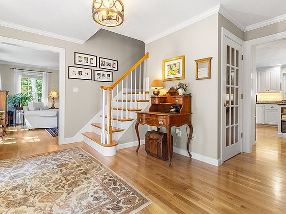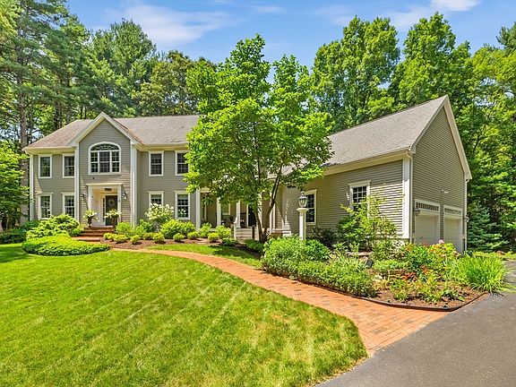 Experience Luxury Living at Ellis Farms, a serene cul-de-sac neighborhood! This Custom Colonial offers 4+ bedrooms, 2 full and 2 half baths across ~ 4,300 sqft. Situated on 4.23 acres of landscaped land w/mature plantings and woods, it features an expanded slate patio, tranquil water garden, firepit, and serene three-season sun porch. Inside, a stately study with French doors and a bar area with wine fridge, an eat in gourmet kitchen with Thermador appliances & sunny fireplaced family room with custom built-ins. The spa-like main bedroom has a sitting area and dual walk-ins. Three additional bedrooms, a home office, a guest bath, laundry room, and ample storage complete the upper level. The lower level includes a game room, TV room, exercise room, with a half-bath. A 2-car garage, mudroom, and an inviting foyer leading to the formal living rm w/gas fireplace and dining rm adding to its "homey"charm. Minutes from the highway and Franklin commuter rail, and near top-rated schools. A GEM!