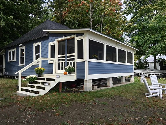 Welcome your friends and family to this adorable Lakefront Cottage with 115 ft of direct shoreline and fabulous Easterly Lake and Mountain views. Relax with your morning coffee watching the sunrise over the lake and mountains from your expansive screen porch. Open the cozy living area to the porch and beautiful outdoors through french doors, bringing the fresh lake air in. The open living area has been newly painted, newer floors, and all new furniture. Cathedral ceiling and woodwork throughout enhance the charming cottage feel. The main cottage consists of 2 bedrooms and 1 full bath. A cozy and private Bunkhouse with 1 bedroom and 1/2 bath offer additional sleeping space for guests. Two solid sets of concrete steps and deck bring you down to the shoreline and docks. Delight in summer fun, boating, swimming, paddling, fishing, roasting marshmallows, and making amazing memories. Power pole provides 30 and 50 amp service for shore power for your boat, lift, or other recreational toys. The cottage is fully furnished and equipped, and ready for your enjoyment!