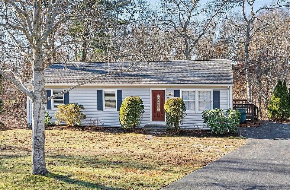 Nestled on a serene wooded lot, this charming ranch is ready to welcome its new owner. This home is part of the desirable Kingsbridge Shores Neighborhood. There is a warm and inviting eat-in kitchen and the main level is mostly adorned with gleaming hardwood floors. The Main Bedroom is spacious with a bathroom as well. There is a finished walkout basement with additional space that can be used as a bonus family room, playroom, or gym. The allure extends outdoors with a spacious deck overlooking the yard, an outdoor shower, and a generous shed for extra storage. The vinyl siding is key for low-maintenance upkeep. Convenience is key, with shopping and highway access just moments away. For beach enthusiasts, Scusset Beach, a private enclave for the neighborhood, adds an extra touch of coastal charm.OPEN HOUSE SATURDAY 12/16 11-1