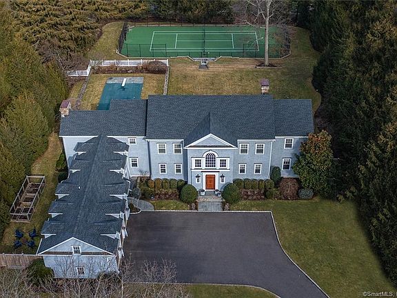Located on a sought after cul de sac in the heart of Westport, is this custom built shingle style Colonial offering a lifestyle rarely found within a home. Enjoy year round entertaining in your custom pub and billiard rooms. Summer is almost here to enjoy the heated gunite pool/spa and Har-Tru tennis court. Expansive teak decking overlooking the rear yard is accessed from 7 sets of french doors providing cozy areas to gather and entertain. Special features of this home include formal library with FPL, his and her home offices, Primary BR dressing rooms, butlers pantry with wine fridge, homework nooks and spacious mudroom off the 3 car garage. You will love the newly renovated cabana room built into the walk out lower level complete with wood burning fireplace and entertaining kitchen. Au Pair quarters, home gym, game room and pool changing rooms complete the lower level. Bonus features include whole house natural gas generator, new roof, Lutron lighting and thermostats. This welcoming sun filled home has perfect room scale for both large and intimate entertaining & has been lovingly cared for by the current owners. Enjoy summer country club living at this architecturally significant home.