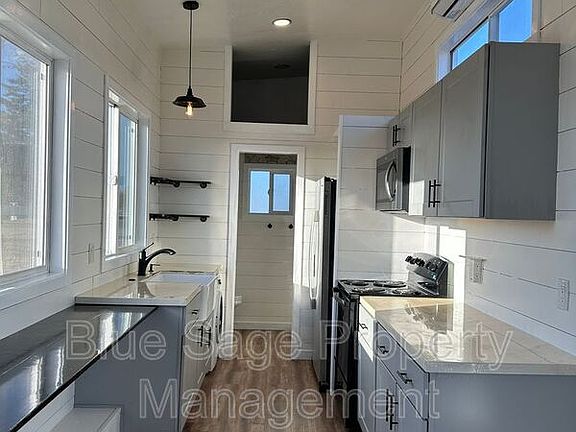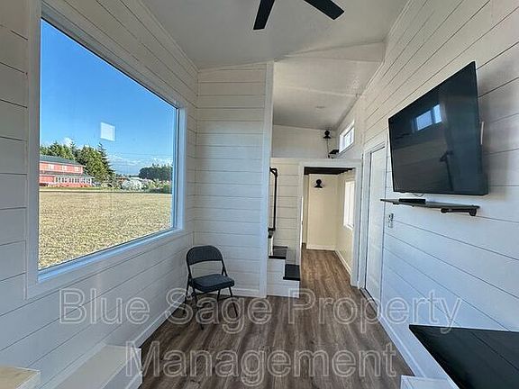 This tiny home is situated on a 5 acre lot, with some mountain views. Close to Agnew, in between Sequim and Port Angeles.