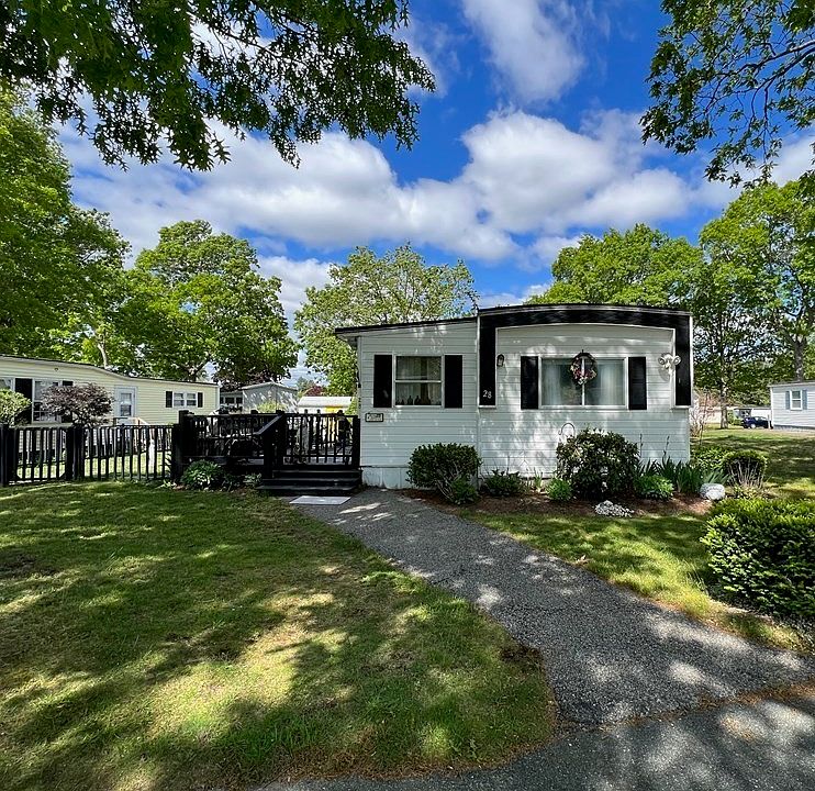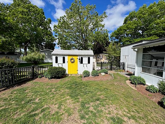 OPEN HOUSE CANCELLED, OFFER ACCEPTED!! Pinehurst Village 55+ Community located in West Plymouth. This single wide has been modified with bump out to make it larger and much more comfortable. The kitchen, dining & livingroom areas are all open to each other for a great floor plan! 2 bedrooms and 1 full bath, this home is being sold in as-is condition and does need updating and some TLC. There is a sun room off the side and a nice fenced side yard for your pet, along with a large shed. This park is pet friendly and offers swimming pool, club house, walking trails, function hall & more. The monthly fee covers water, sewer, taxes and trash. Pets are welcome too.