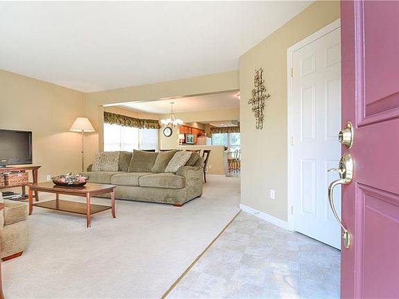Beautiful end unit town home in maintenance free Castleview community. First floor welcomes you with spacious living room open to the dining room and eat in kitchen. Large bay window adds extra dimension to the dining room. Kitchen with solid maple cabinets, center island, breakfast room, large pantry and sliding glass doors to the deck overlooking wooded back yard. Open rail staircase leads to the second floor. Upstairs master bedroom offers walk in closet and on suite bathroom with two separate vanities and shower tub enclosure. Two other bedrooms and full bathroom complete the second floor. Finished lower level game room with plenty of storage. This unit is located on the street level with only one step to the front door and ample parking space in front. Montour School District. Excellent location close to I79, Robinson Mall, Downtown, Pittsburgh International Airport.