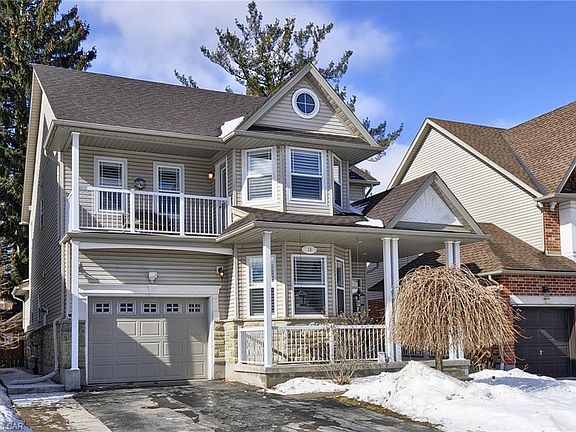This stunning Berkshire Model, beautifully maintained with many upgrades won't last long! Nestled in a family friendly, highly sought after Hespeler neighbourhood, just mins to the 401! Featuring...designer foyer, California ceilings, California Shutters, eat-in kitchen with matching backsplash and porcelain flooring, separate dining room, Large master bedroom with 5pc ensuite, balcony off the 3rd bedroom, gas fireplace in the main floor living room, fenced yard, surround sound, 9 ft. ceilings on the main floor, maple railings to match cognac hardwood stairs. All new main floor kitchen appliances(2020). Fully finished basement with In Law Suite potential including a full kitchen, newer appliances(2020), Basement reno was done 2018. Wiring and concrete pad for hot tub, gas line for BBQ, close to wooded area, Brewster trail, schools, all amenities, A MUST SEE!!!