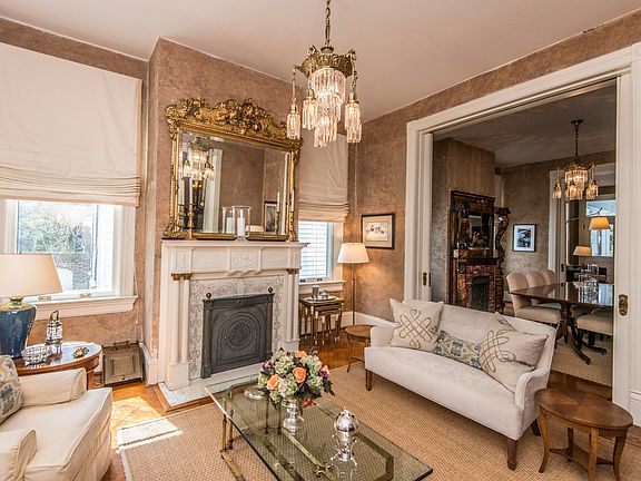 This magnificent circa 1902 meticulously renovated home is in desirable Mazyck-Wraggborough on one of the best streets in downtown Charleston! On high ground (no flood insurance required!) on a quiet, tree-lined street just steps from Marion Square, The Gaillard Performance Center, parks and playgrounds and the best restaurants in Charleston. The grandeur of the home is apparent immediately, with a King of Prussia marble staircase leading to a specious front piazza, a generous foyer, grand staircase, 11.5 ft ceilings, 10ft. original pocket doors, beautiful mantles and chandeliers. Beautiful original parquet flooring enriches the public spaces on the first floor. With open pocket doors the rooms flow into each other, resulting in the perfect open floor plan for entertaining. Features include a formal separate living and dining room, with a large family room area that merges into the modern chef's kitchen. An island provides seating for 6 and the kitchen boasts top of the line appliances, including a Dacor wall oven and Wolf 6-burner range. Each room on the main and second floors has a fireplace with a unique, restored mantle. Wonderful original design elements can be found throughout the home. A generous private courtyard features a mature garden and fountain. The 2nd floor features a master suite including a spacious, modern bath with a separate tub and curbless walk-in shower and a separate room converted into a walk-in closet. 2 guest bedrooms and one guest bath, along with a comfortable seating area with access to the generous 2nd floor piazza completes the 2nd floor. A 3rd floor spans the footprint of the home with a very large open space used as a bedroom and family room, 2 walk-in closets and a full modern bath. The lower level features a full kitchen, full bath, a media room also used as a bedroom, a walk-in wine cellar with a WhisperKool system and custom built shelving, office space and laundry. This lower level has a private entrance. Two off-street parking spaces off of the driveway are made of attractive permeable pavers. Enjoy the best tree-lined street in The Garden District that has three parks and two large playgrounds nearby.