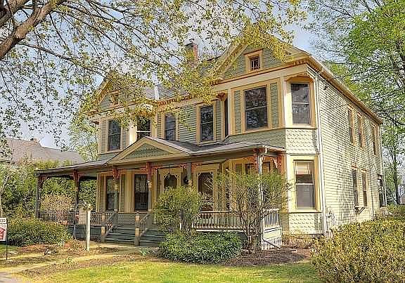 In the heart of Rhinebeck Village on prestige Chestnut Street, this magnificent 7 BR, 5/5 bath, 3472 SF, 1889 Victorian has the spaces, charm, & style for modern living. 15 light filled rooms provide abundant spaces to accommodate any life style. A modern K & baths add convenience. Newer mechanicals are easy to manage. The charm of a bi gone era has been preserved here w/WB floors up & down, huge windows w/4 bays, pocket doors, crown moldings, 8.5 & 9 ft ceilings wraparound porches & walkup attics. A double lot includes wonderful plantings & trees, lawns front & back, & abundant parking. Amazing & priced to sell by relocated owner!