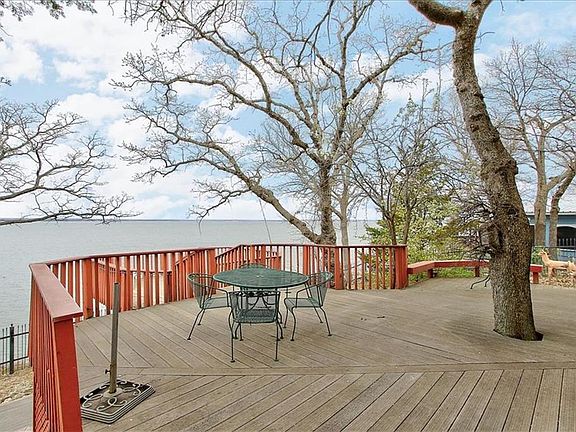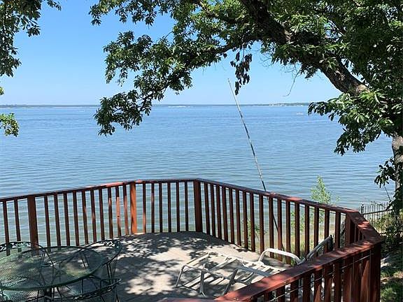 Escape to this beautiful log cabin Lake House with the most beautiful, panoramic views of Lake Texoma, the Islands and Oklahoma Shores. Enjoy the sunset with a cocktail on one of the two fabulous Trex decks. The home features soaring, wood clad ceilings, lots of natural light and views of the lake from almost very room. A short walk down and you can swim at the shore. Ground rent is $600 per year and includes water. Buyer must be eligible to join the VFW, or be a member of the Ladies Auxiliary. Roof replaced April 2019