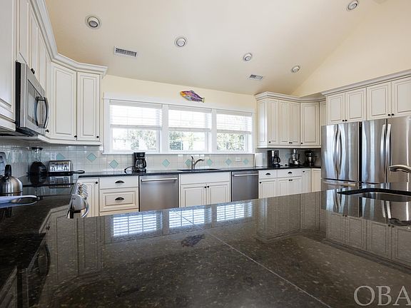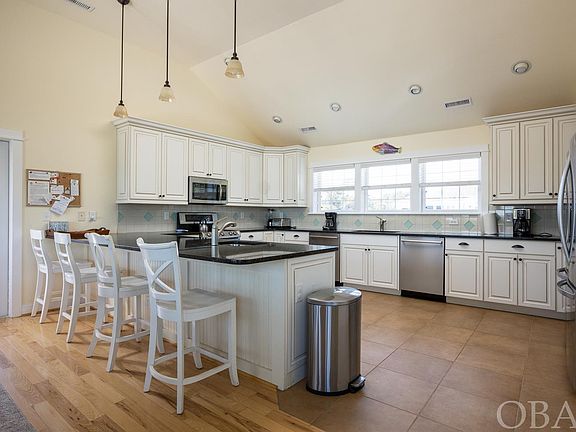 This meticulously maintained home is private, close to the beach, and nestled in the woods on the highly coveted Circle Drive area of Southern Shores.  Unlike some of the other streets in Southern Shores, this home faces the east and is situated on a 20,000-square-foot lot.   Custom built by Olin Finch, this home is a proven rental producer while still having an "at home" feel.  Set up as a reverse floor plan, the top level has an open floor plan with real hardwood floors, granite countertops, and updated stainless steel appliances.  The kitchen, dining, and living areas flow seamlessly together and make for a great gathering area for big families.  There is one primary bedroom upstairs with a large bathroom equipped with a jet tub and walk-in closet.  The room also has access to the top-level deck which has recently been upgraded to Trex decking and a screened-in porch.  The middle level has four other bedrooms, two of which are primary rooms along with an extra seating area with a TV, couch, and recliner.  The backyard has a large pool and pool deck which is great for relaxing days off the beach.  This home sits two lots away from the private neighborhood walkway to Ocean Boulevard and the beach access which makes for a quick and peaceful walk to the beach.  The house currently does not have an elevator, but an elevator shaft is currently framed in and being used at owner storage closets.  Houses on this street don’t come on the market very often, don’t miss your chance to own your dream home in Southern Shores!