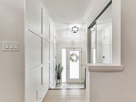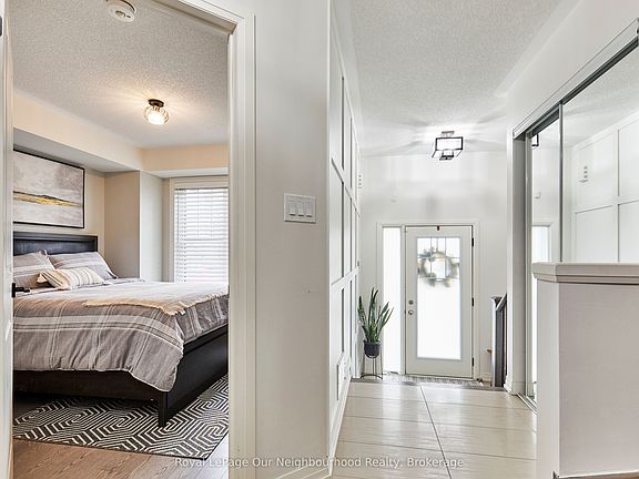Welcome to 28 Clarington Blvd, a truly stunning 4 bedroom, 4 bathroom townhouse! 9ft ceilings & large windows throughout create the utmost spacious feeling & allow natural light to fill the home. Upgraded oak staircases! Beautiful hardwood floors are found on the 2nd and 3rd levels, as well as in the 4th bedroom, located on the main level. As you enter the 2nd level, you are met with an open concept, modern vibe. The very spacious living room and dining room, include an electric fireplace, a walkout to the balcony, wainscoting & dimmable pot lights. The gourmet kitchen includes stainless steel appliances, a modern backsplash, quartz countertops, which include a breakfast bar, soft closing drawers as well as a large island & dimmable pot lights. Floor to ceiling windows and large sliding doors lead you to one of your beautiful, spacious terraces from the kitchen/breakfast area. Truly a fabulous space for entertaining or simply relaxing. The terrace also includes a gas hookup for your BBQ. On the 3rd level, you will find your primary bedroom, which includes a 3 piece ensuite with a quartz countertop and a walk-in shower. The room also includes a walk-in closet with custom inserts and a walk-out to your private balcony. Bedrooms 2 & 3 have large windows & custom closet inserts. Take a walk up to the 4th level, where you will find another lovely terrace! So many options to create your outdoor spaces! The main, entry level of the home includes a 4th bedroom, a 3 piece washroom with a quartz counter and the laundry room. The walkout to the 1.5 car garage is also accessible on this level as is the entry to the unfinished basement which has lots of storage space! Additional features of the home include a 200 amp service, Zonesmart climate control, a tankless water heater & garage door opener. Be sure to open each door leading to the various terraces/balconies as you tour the property! POTL fee $107.31/month