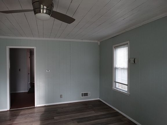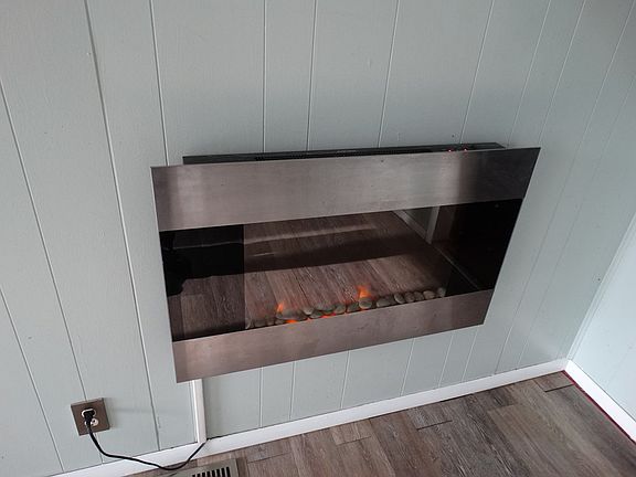 This ranch/bungalow is warm and cozy. Enormous fenced-in backyard for kids or pets. Living room has an electric wall fireplace that acts as a heater as well.