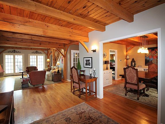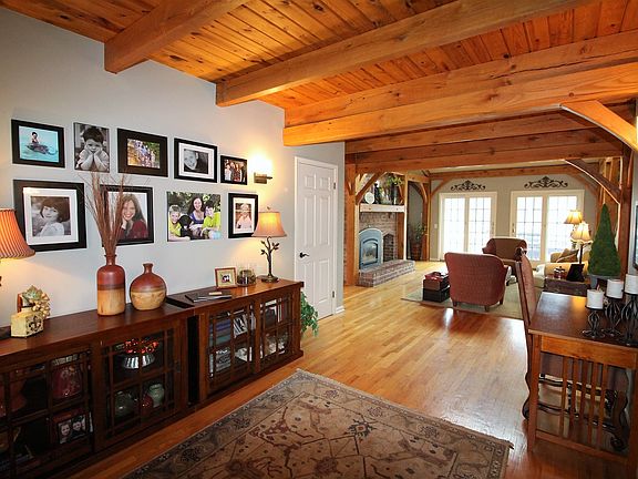 Colorado in Cobblestone Creek! 18 holes of golf and numerous hiking trails right in your backyard? What more could you ask for! You'll find this absolutely gorgeous 4 Bed, 2 and a half bath updated Post and Beam just off the 4th hole in the highly sought after Cobblestone Creek neighborhood! Bursting with warmth, charm, and character, you'll feel at home here as soon as you walk in: exposed beams and fireplaces throughout the house offer a rustic flair while newly updated kitchen, added great room (2008), beautiful picture windows and gleaming hardwoods offer a level of comfort and bright modernity. First floor master suite as well as first floor laundry demonstrate the ease of living in Cobblecreek, and partially finished lower level offers plenty of space for storage and entertaining! Private drive decreases traffic and ensures safety for family members and guests! Settle in, there's a back deck, a beautiful view, and a cold drink waiting for you!
