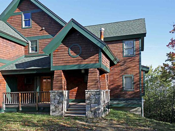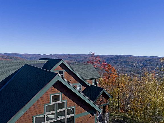 Private end of road, upper mountain setting offering direct slope access with substantial views of Moonshadow Trail and the Black River Valley beyond. Custom-built, five bedroom home abounds with high-end features and expanded living areas. Gourmet kitchen includes two separate work spaces, each with its own sink and dishwasher, commercial range, stainless steel appliances, granite counter tops, cherry cabinets, and breakfast bar. Open dining room design with maple floors, cathedral ceiling and sliders leading to an expansive deck. Sunken living room with open beam ceilings centered by a majestic stone fireplace with sidelights and window seats. Main level office is highlighted by a wood ceiling and beautiful cherry built-ins. Upper level comprises of private master bedroom suite with built-in cherry cabinetry, walk in closet and bath with whirlpool tub, glass enclosed shower with dual shower heads, and cathedral ceiling. Two additional open and airy upper level bedrooms. Large studio/game room offers a myriad of possibilities. Ground floor ski room complete with numerous built-ins and cubbies exits out to the slopes. An inviting family room with bead board and chair rail and a built-in entertainment center creates exceptional additional living space. Two well-proportioned bedrooms are privately located on the level's west wing. Deck overlooking long distance mountain views offers great relaxation space for star gazing and absorbing the location's private natural beauty.