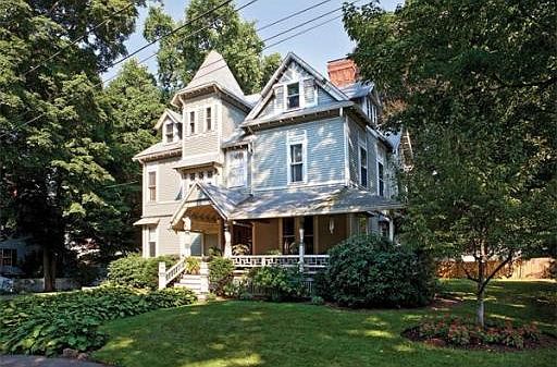 Enter the warmth of historic architecture blended with modern comforts & style. Exhibiting several features associated with the 1870's Victorian Stick Style, incl. a high pyramidal entrance pavilion, this sumptuous home reflects the owners commitment to its' preservation. Surrounded on three sides with quintessential porch and decks, the 1st level has 10' ceilings, 4 detailed fireplaces, deep moldings, gracious formal spaces, and a custom built country style kitchen. The 2nd level has a master w/private bath and walk in closet, two large bedrooms & a marble bath. The central stairwell is accented w/stained glass. Systems are young and include central air and vacuum. The 3rd floor has a recently renovated bath and four additional bedrooms. The level yard is professionally landscaped with underground sprinklers, and a two car garage. Situated in the Hunnewell Hill neighborhood, the location provides easy access to the City, public transportation and the elementary and middle schools.