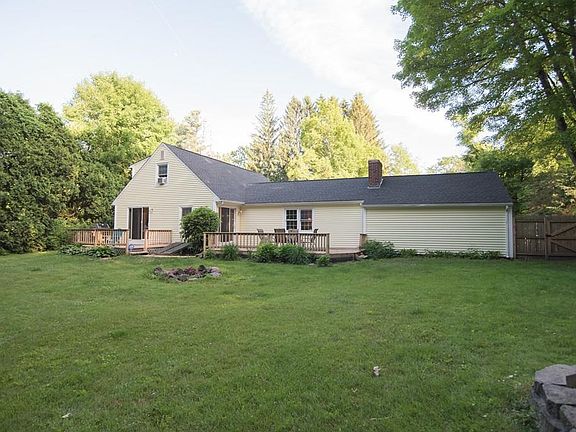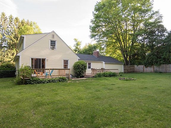 Pretty as a Picture is this Captivating Vinyl Sided Cape located in a desirable neighborhood & street that is set on large & private yard w/ a 2 car garage, newer roof, gas heat w/high efficient Utica Boiler! You are welcomed into a spacious living rm/great room w/wood flrs,brick fireplace w/charming built-ins that takes you into the totally recently renovated kitchen w/striking cabinets, easy care ceramic tile flr, appliances to remain for the lucky buyer,breakfast bar for casual dining is open to the large dining room area w/slider to the private yard. There are two generous 1st flr bedrooms both w/wood floors & 1 could easily be used as a master bedrm w/great closet space along w/a recently renovated full bathrm w/stylish linen cabinets & vanity w/ceramic tile flr. The 2nd flr offers a recently updated full bathrm w/newer vanity & tile flr, 2 large bedrms both w/wood flrs & plenty of closet space. Enjoy game time in the nicely finished rec rm w/cozy fireplace & whole lot more!