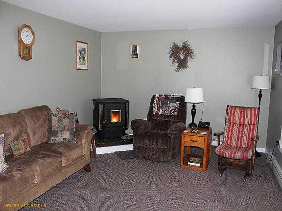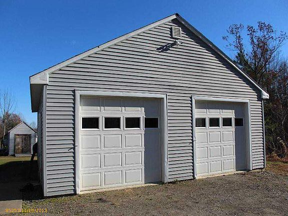 Country setting but close to town. Spacious 2005 Cape featuring 4 bedrooms, 2 baths, living room with heat stove and detached 2 car garage.