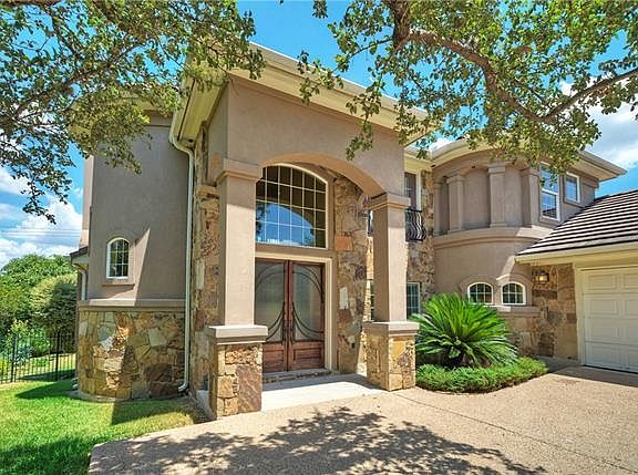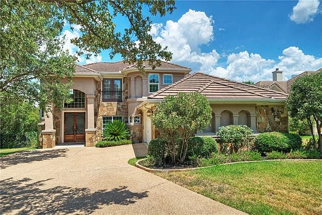Luxurious 5 BR/3 BA in The Hills! Primary BR on main w/tray ceiling, WI closet, private entrance to backyard & ensuite BA. Living rm w/double height ceiling & panoramic windows. Kitchen w/SS Frigidaire Pro appliances, Bosch dishwasher, granite, copper backsplash. Dine at breakfast nook, formal dining, outside on expansive veranda overlooking backyard! Home office & full BA on main. 4BR+full BA w/dual vanities up. Amenities: athletic club, golf course, pool, tennis courts, clubhouse & more! Lake Travis ISD