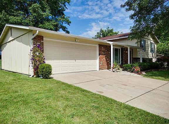 Perfect either way! If you are needing to move up or downsizing, this is the one for you! The Living Room is bright and the picture window gives it sunshine galore. On to the spacious Kitchen which features a chair rail and room for a large table & chairs and plenty of counter and cabinet space. Upstairs are the bedrooms, hall bath and master suite with updated bath. All windows on main and upstairs have been replaced and a newer slider to patio. The Family Room is downstairs complete with woodburning fireplace and brick hearth. Five ceiling fans are well placed throughout the home. The Laundry has numerous cabinets, working counter space and 2 windows replaced with double hung lookout windows. Out the kitchen door is the oversize garage with lots of cabinets and a service door to the backyard. This great home is convenient to Hwys 94, 70 and 364 with shopping at all major stores, many churches, schools, hospitals and parks.