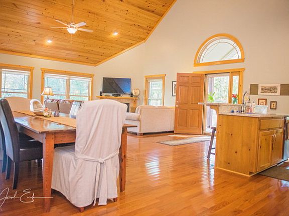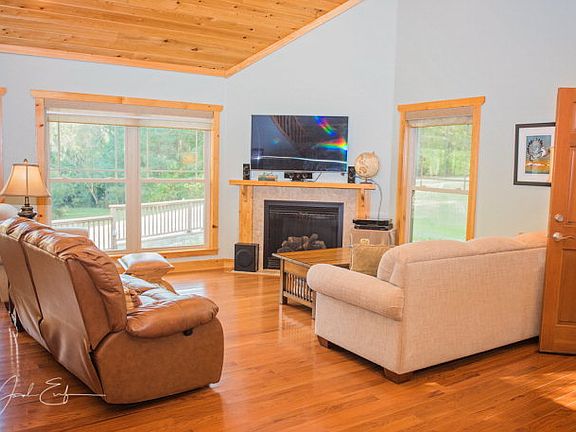 Large master, hard wood floors, with walk in closet and beautiful sunroom overlooking property.French doors lead to deck from master. On suite boasts a 6 ft jetted tub, double vanity and walk in shower. Three-car carport is perfectly situated below 43X22 ft covered deck. Covered, well lit porches provide the perfect outdoor entertainment space. Well equipped with various storage facilities & dock