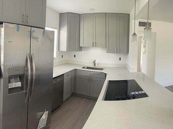 EVERYTHING IS BRAND NEW!!! Central A/C, Electrical Panel & wiring, Water Heater, Lighting/Hi-Hats, Flooring, Kitchen, Stainless steel appliances, stovetop island opened to living area, Bathrooms, Doors, Closets, Paint. Building in the process of painting. This FIRST FLOOR CORNER UNIT at Century Village (+55 Community) is a MUST SEE! No expense spared! TOTALLY REMODELED with modern feel, sleek cabinetry, white quartz countertops, island cooking stovetop, open floor plan to enjoy with guests and family. READY TO MOVE IN!!!