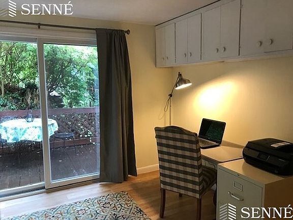 MUST SEE! FURNISHED, Charming, sun-washed 1 bedroom with study. Updated kitchen. Private outdoor deck. Quiet neighborhood 2 doors from bus. Private deck.1 car off street parking. New washer and dryer in unit. In wall air conditioner. HEAT AND HOT WATER INCLUDED! Available July 15. No pets, no smokers. Bike storage in garage. May be rented unfurnished.