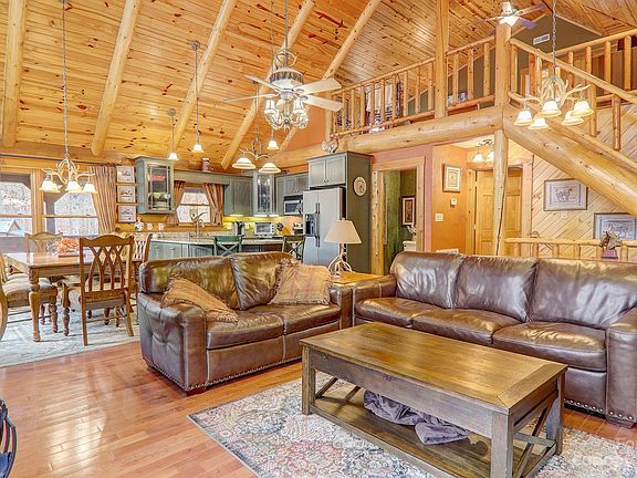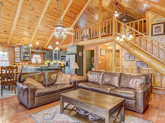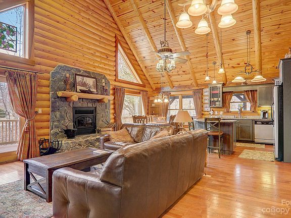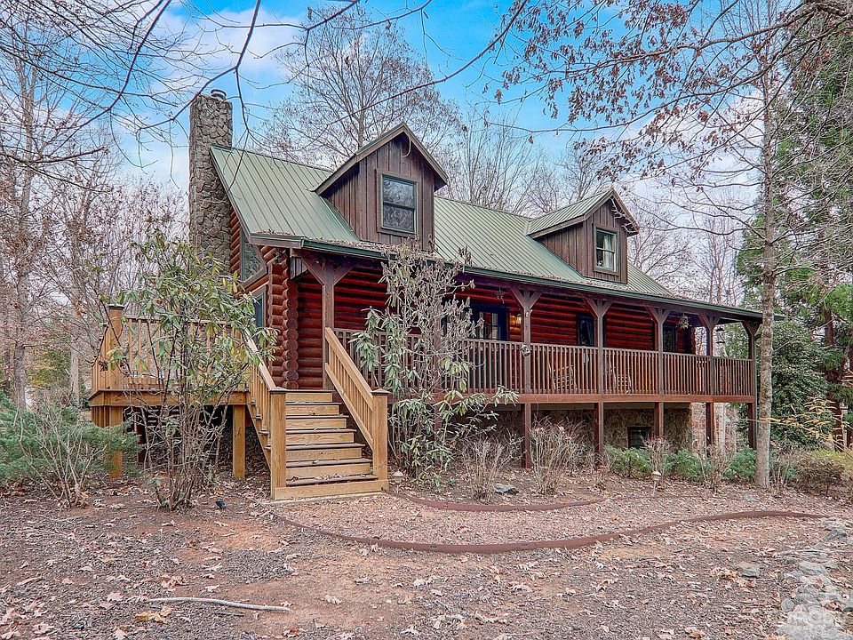 Looking for a dream property? This 3-bedroom, 3.5-bathroom custom log home with cathedral ceilings, a stone fireplace, and walk-in closets is a real gem. The game room/office is a versatile space that could be used for work or play. The metal roof and tank-less water heater add modern efficiency, while the wrap-around porch offers stunning views of the wooded landscape. Located in a gated river community, Green River Highlands is close to Tryon International Equestrian Center making it even more appealing. And with wood floors, granite counters, stainless appliances, additional sleeping rooms, plus the stone BBQ pit and fire pit, it truly encompasses both convenience and rustic charm. This is a haven for anyone seeking a blend of nature and comfort! This home comes fully furnished & short term rentals are allowed.