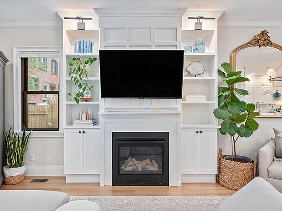 Newly renovated 3 bedroom, 3 bathroom first & garden duplex, steps from the Monument. Your private entry leads into an open, inviting living area with high ceilings, a gas fireplace and custom built-ins. The dining area features a dramatic picture window overlooking the private patio with a hot tub - ideal for entertaining. Adjacent kitchen showcases a sprawling island with ample bar seating, beverage refrigerator and Thermador appliances. Versatile main floor bedroom includes a custom murphy bed & desk, along with a walk-in California closet. Downstairs is the king-size primary bedroom with ensuite bath and custom closet, as well as a smaller ensuite bedroom - perfect for a nursery or office. Accents include white oak flooring, central AC, custom blinds, high-end fixtures, and additional under-stair storage. Located on a picturesque street with flowering trees and charming windowboxes, just steps from Monument Square, shops, restaurants, and all the best of Charlestown.