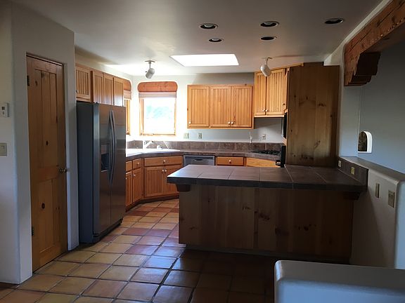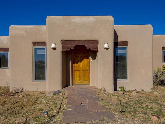 Wonderful Santa Fe Home! This beautiful home offers the peaceful setting of Eldorado with breathtaking mountains views right outside your windows. A Santa Fe style home that denotes the quintessential elements of Santa Fe through diamond plaster walls, wood vigas, corbels, Saltillo tile, berber carpet, roomy kitchen, gas range and miraculous sunset views that can be enjoyed from the tranquility the backyard. The home's roof and ceiling need a little TLC and would be a perfect match for a savvy buyer ready to make this house their ideal Santa Fe style home! The master bath and living room have kiva fireplaces, skylights throughout inviting natural light and plenty of room to entertain including a kiva fireplace at the backyard-covered porch. Spacious three bedrooms, 2 full baths sprawling over 2,152 square feet of heated space and two-car garage on a single level floor plan on 1.48 acres nestled in Eldorado built in 1991. This home is the reason people move to Santa Fe.
