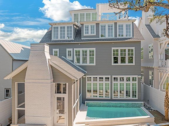 Welcome to 28 Cypress Hill, a stunning new construction home nestled in the desirable neighborhood of Old Seagrove, adjacent to Seaside. This architectural masterpiece, designed by TS Adams and built by Ryan Harp Construction, offers the perfect blend of elegance, luxury, and coastal charm.Spanning across three spacious floors, this remarkable residence boasts a total of 7 bedrooms, including two primary suites thoughtfully located on the first and second floors. Additionally, two bunk rooms, 8 full baths, and 2 half baths ensure ample space and comfort for all guests.As you enter the home, you'll be greeted by an open and airy floor plan, featuring a generous great room adorned with shiplap walls and a cozy fireplace. The dining area seamlessly flows into the well-appointed kitchen, complete with top-of-the-line Thermador appliances, a 48" gas range, quartz countertops, and a custom tile backsplash.