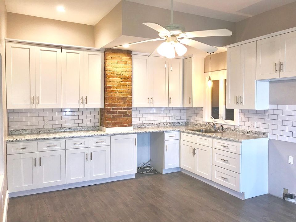 Be the first to live in this newly remodeled, airy bright apartment, with two floors of living space, basement, full-size deck, and a view of the lake. Brand new kitchen cabinets, counters, floor, and appliances. New paint through out, new tiled bath tub surround and bathroom floors, and a loft in living room for extra sleeping space. White Shaker Kitchen, pine flooring in living room with a loft, and a half bath are on the first floor. Bedroom with pine flooring on second floor with bright tiled full bath. Apartment has private entrance with a deck, two parking spaces, and private laundry hook-ups in the basement. Washer and dryer are not provided. Apartment has been newly insulated. Heat is electric. A propane heater is in living room for additional heating. Hot water is electric. No utilities included. Average electric bill $106 No pets. Non-smokers. First month and security required. Lease is for 6 months or 1 year. Tenant is responsible for snow removal for their parking spots and entrance to apartment. Tenant is responsible for trash removal.