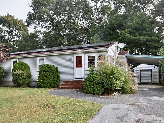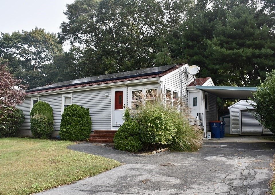 Enjoy the ease of 1 Level Living in this adorable Ranch Style Home, featuring 2 Bedrooms & 1 recently renovated Bath. Location is central to all your necessities...highway access, grocery stores, shopping, restaurants & the Boston Train access. New laminate floors just installed, Solar Panels installed in 2021, Roof is less than 5 years old, Bath recently renovated in 2022, 5 windows have been replaced, new front & storm door installed 2023. Property has attached Car Port to protect you on those rainy/snowy days. Yard is fenced in & has 2 sheds on the property. Please note, License to Sell is needed prior to the Sale of the property.