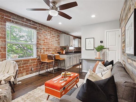Mint mid-century top floor 2BR flat is bright and beautiful w/exposed brick walls, and beautiful new floors. Updated open kitchen with granite counter, double under-mount stainless sink, and stainless appliances. Big living room with re-claimed wood feature wall and dining area. Beautiful bath with bespoke ceramic tile and cast iron tub. Big owner's bedroom with two walls of exposed oversized red brick. 2nd big, bright bedroom. 5-blade ceiling fans in LR, and owner's bedroom, great closet space. Huge private deck with cable railing overlooking the serene courtyard and fountain. Covered porch with storage box. Entry hall only serves two units. Gated community with plenty of guest parking and 1 deeded space near the unit. Recently updated w/new paint, washer/dryer included with the sale. Well funded and professionally managed community just received a grant for ~6 new EV charging stations and Google fiber was just installed down Daniel Street! Walk to Beltline, Krog Market, Inman Park Village, and Sweet Auburn Market. Just steps from Chrome Yellow Trading Co coffee shop, Fetch dog park/bar, Staplehouse, Slutty Vegan, Biggerstaff Brewing Company, King of Pops and Edgewood shops and restaurants. So much space and charm in the most rapidly developing part of the city!