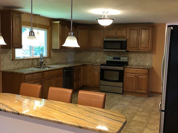 Tempting buy in East Longmeadow if two bedrooms are acceptable and you like the idea of having large open spaces for entertaining your friends and family. If you've been searching for that home that focuses more on living space and less on sleeping areas this could be the one. The recently remodelled kitchen, with its new cabinets, granite countertops and stainless steel appliances, opens to a 23" x 23" great room. Spacious enough to welcome large groups or maybe it would be for your large toys, like maybe a pool table, it's up to you. An additional crowd pleaser will be the fieldstone fireplace in the comfortable living room. Imagine cozying up near the warm fire when the cold weather approaches. To accommodate our four legged friends, there is a nice private, fenced rear yard accessed directly from the back door. The bathroom has been remodeled.The roof was replaced in 2008.And if you need more space, there's another finished room in the basement that sports another fireplace