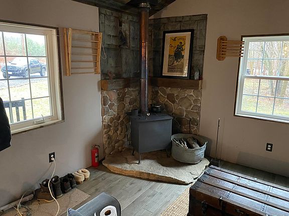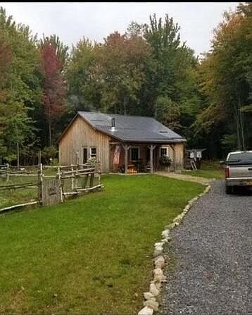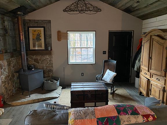 This 2020 Rustic 2-Bedroom Ranch Style Home is in excellent condition with a open floor plan with Vaulted Ceilings in the Living Room-Has a Wood Stove in the Living Room and also has in floor Heating- sits on 3.70ac with multiple outbuildings to include Old Style Root Cellar-12x24 Storage Building-Green House-Outside Shower-Garden area-small Deck-Covered Porch-Buried electric. This is a great getaway property with a Gravel Driveway.