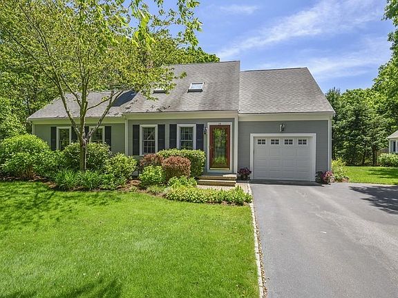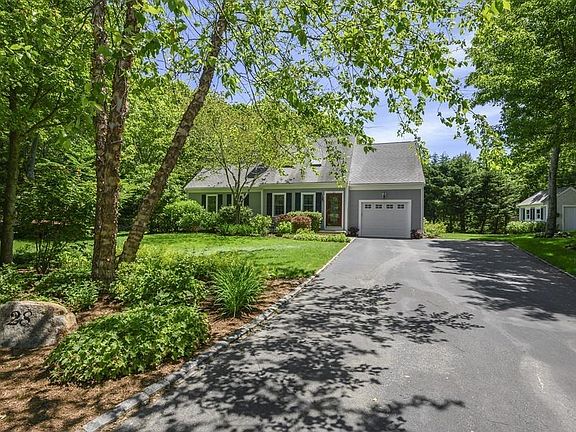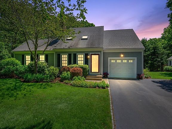 Welcome home to this beautiful sun drenched Cape in the Hunter Hills Estates. This home is ideally situated at the end of a cul de sac with a stunning landscape as a backdrop to this quintessential coastal retreat. Spectacular 1st floor boasts a vaulted ceiling & 3 sets of sliders from kitchen, large family room & first floor bedroom leading to a breathtaking oasis of mature plantings surrounding an oversized private patio & yard. Kitchen is immaculate, featuring maple cabinets, a gas stove & granite. An open staircase leads to a generous loft area, large enough to use as exercise/yoga area or office, as well as two large bedrooms with ensuite heated floor bath. Central air, sound system, irrigation & an outdoor shed are just a few other fantastic features of this meticulous home. Last, but not least, this home is conveniently close to the highway, as well as Sandy Neck & Craigsville beaches, Golf courses, wildlife sanctuaries, walking & biking paths, as well as Wequaquet Lake!