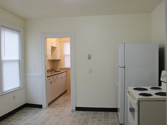 Tired of those cramped, shabby quarters? Then check out this immaculate, super-sized 4BR apartment. Conveniently located near downtown in a privately owned and well-maintained 2-family. This spacious apartment is spread out over 2 floors. Includes living room, family or dining room with built-in hutch, large eat-in kitchen, bedroom and bathroom on 2nd floor. The third floor has 3 bedrooms and large walk-in storage room with shelving. Vinyl replacement windows with mini blinds. Off-street parking. Good sized fenced-in and private rear yard. Non-smoking unit. Absolutely no pets. $1175/month plus utilities (heat, hot water & electricity). Owner pays for water, sewer, trash pickup, yard maintenance and snow removal. Tenant pays for heat, hot water and electricity.