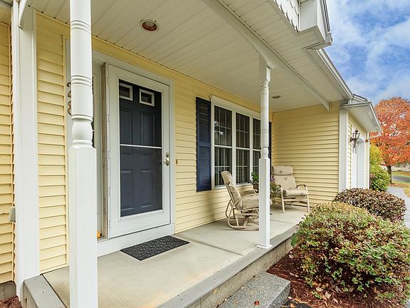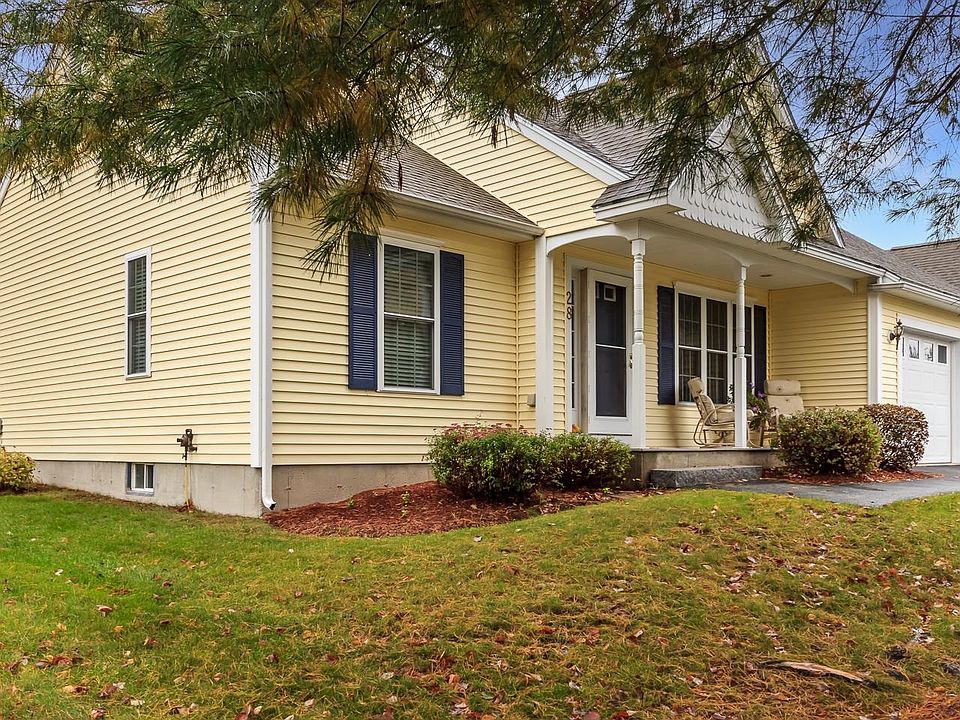Welcome to 28 Dixon Drive! Discover your ideal retreat in the heart of the desirable Canberra Village 55+ community. This charming single-level home features an inviting open floor plan adorned with cathedral ceilings and beautiful hardwood floors, creating a warm and welcoming atmosphere. The spacious eat-in kitchen boasts ample cabinet space, perfect for culinary adventures, while the bright sunroom, with its own cathedral ceiling and ceiling fan, invites you to relax and enjoy peaceful views of your private patio. Retreat to the large primary bedroom, complete with hardwood floors, a generous closet, and a private full bath with a shower. The versatile second bedroom can serve as a cozy guest room or a functional office/den, also featuring hardwood floors and a ceiling fan for added comfort. For hobbyists and DIY enthusiasts, the expansive unfinished basement offers abundant storage and workshop space, with endless potential for future expansion. Plus, an attached 1-car garage ensures hassle-free parking year-round. Enjoy outdoor living on your covered front porch or rear patio, perfect for savoring your tranquil surroundings. With central AC for year-round comfort and a low condo fee of just $275/month covering snow plowing, landscaping, septic, and clubhouse access, you’ll enjoy easy, low-maintenance living. Pet-friendly and self-managed, this lovely home is ready to welcome you. Come experience the vibrant lifestyle at 28 Dixon Drive!