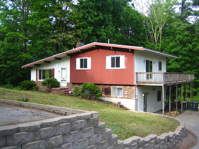 Spacious multi level home in great subdivision with easy access to highways, shopping, schools and all amenities! This home needs cosmetics and kitchen and bath updating...the big ticket items have been done with newer roof, furnace, oil tank and windows. The two sided deck overlooks the one acre lot w/fence and has a private wooded setting. Vaulted ceiling Living room w/skylight, Samsung wall a/c and wood stove to take out the chill. Huge kitchen w/sliders to deck, large pantry closets and vaulted ceiling. Master Bdrm suite w/sliders to deck, 2 lighted closets and attached full bath w/laundry area and hook-ups. Two additional bedrooms w/berber carpets. Walk-out basement has spacious family rm/rec room, full bath, small kitchenette & 2 additional rooms w/closets. Town water & sewer, 200 amp electric service, shed, two parking spaces in front and separate driveway parking also! If you need alot of square footage & storage space, then this home is for you. NO FHA financing, SOLD "AS IS".