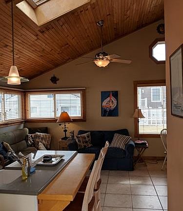 Beautiful Ocean Beach II Bungalow in a private beach community with guarded ocean and bay beaches, clubhouse and playground. Built in 2007, this ocean block home features an open, airy floor plan with two bedrooms, vaulted ceilings (skylight), plus a spacious loft. Central air and heat, washer dryer, dishwasher, island kitchen, attic storage, vinyl siding, and patio. Location, Location, Location!