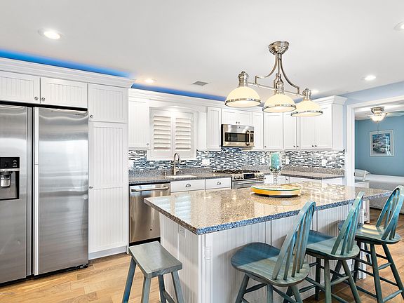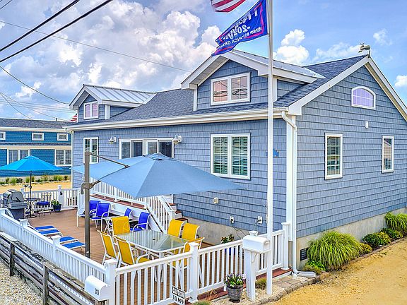 Meticulously maintained and beautifully appointed raised ranch on double lot w/parking for 6 cars. Step into this turnkey home with porcelain wood plank floors, plantation shutters, modern kitchen w large center island and high-end stainless appliances. Relax in the family room with a gas fireplace and sliders that lead to the expansive 16 x 36' deck. There is plenty of room for guests with 3 large bedrooms and 2 modern tiled baths. The spacious Master Suite boasts California closets and an En Suite bath with a multi spray shower. The generous carpeted loft adds additional living space for your remote office. Stroll 6 doors down to your own private ocean beach or go to the bay beach. Furnished Affordable land lease is a tax write off Excellent rental potential of $40K