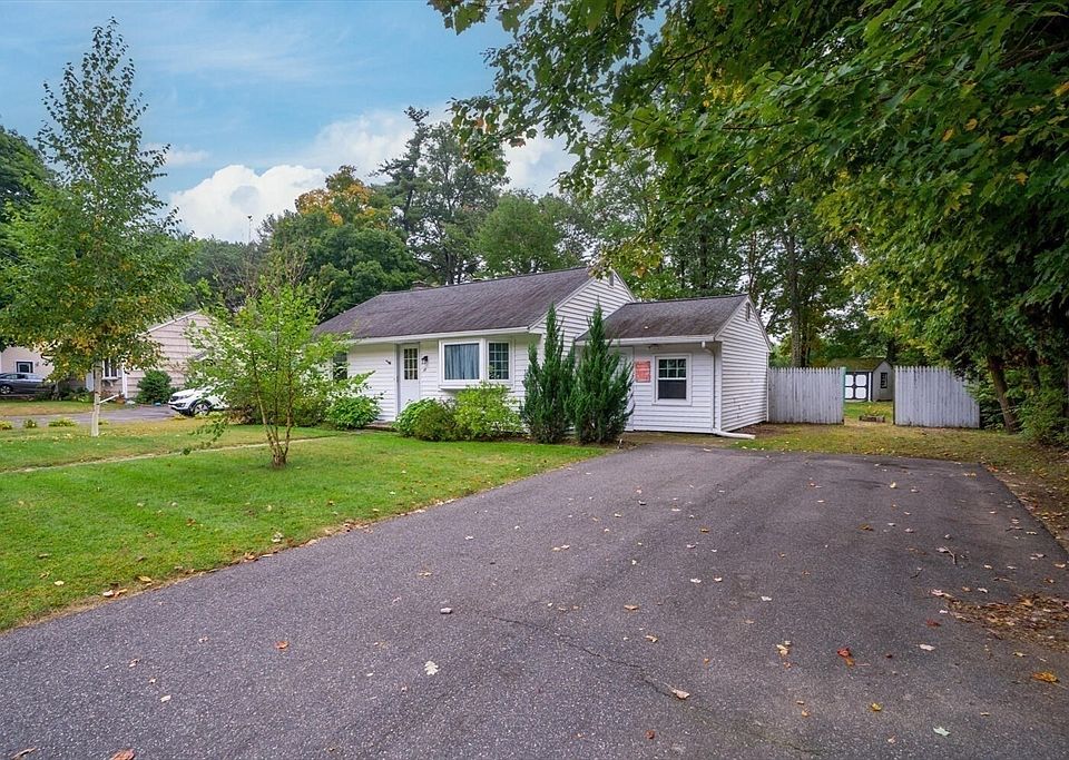 Highest and best offers by noon Sunday 11/10. Well maintained single-level home tucked away on a cul-de-sac at the base of Mount Tom, near conservation and hiking trails, just a few streets from downtown Easthampton with easy access to Rt 91. This home features hardwood floors, updated kitchen with stainless steel appliances, as well as a nicely renovated bath with walk-in shower. Open kitchen and living room plan offers an inclusive entertaining space. Ceiling fans and hardwood flooring in the living room and bedrooms. Window blinds will remain. Nearly a 1/2 acre lot with seasonal views of Mt Tom and southern light in the backyard for your garden. The mostly fenced yard only needs a few panels to complete a full enclosure. Extras include: basement wood stove (owners have used & report that it was very effective), newer windows (2019), Rheem forced hot air furnace and more! Don't miss this adorable house in an ideal location!