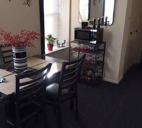 Spacious one bedroom, wall to wall carpet in the bedroom, large vanity in bathroom with plenty of storage, lots of closets, and central heating and AC. Walking distance to the train, suburban square, and Trader Joe s and much more. First, Last, Security, $45 application fee, Utilities not included
