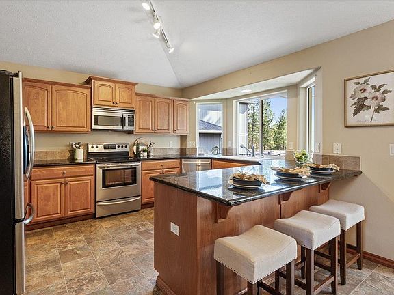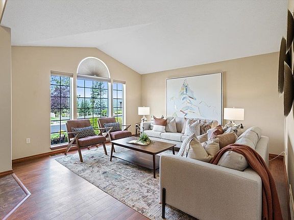 Your chance to own an amazing home in this gated development. Located on a quiet cul-de-sac, this property features a beautifully landscaped backyard plus a natural area. Enjoy outdoor living on the deck covered by the pergola to take in the water feature and peaceful views. Inside, the multi-level layout includes 3 bedrooms upstairs, including the primary suite with a walk-in closet, soaking tub, and shower. The huge kitchen boasts granite countertops, stainless steel appliances, a newer Bosch dishwasher, ample counter space and a pantry. Vaulted ceilings on the main level. Step down to the spacious family room with custom built-in cabinets & gas fireplace, plus a laundry room and half bath. Durable vinyl plank flooring flows throughout the home. The basement features a versatile finished space—ideal as a second family room or a roomy 4th bedroom. Nice storage in the mechanical room. 3-car garage with an area for a workshop. Just minutes to the highly rated Mead schools, golf courses, shopping & restaurants.