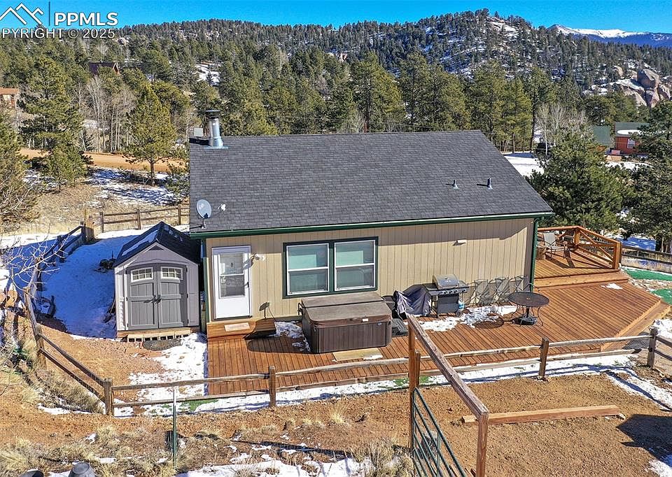 This stunning mountain property is the perfect blend of comfort, convenience, and breathtaking natural beauty complete with great RV parking and a 50 amp plug. Offering main-level living, this home is thoughtfully designed with everything you need for a cozy yet spacious retreat. Inside, the open-concept layout features an eat-in kitchen with a breakfast bar, newer appliances, and seamless flow into the living room—complete with a warm and inviting fireplace. The master suite is a true sanctuary, boasting a walk-in closet, private bathroom, and a serene retreat space. A second bedroom, situated near the second full bathroom, offers privacy and comfort. Automatic blinds throughout the home provide effortless control of natural light. The outdoor space is where this property truly shines. With multiple lots combined, you’ll enjoy plenty of elbow room and endless potential. Take in stunning mountain and scenic views from inside or outside this home or on the newer expansive deck, complete with a hot tub for ultimate relaxation. Additional features include well & septic system, underground propane tank, air conditioning, whole-home backup generator, carport & additional storage port and shed, fenced yard & ample parking options. This incredible property is move-in ready and waiting for you to call it home. Schedule your showing today and experience true mountain living!