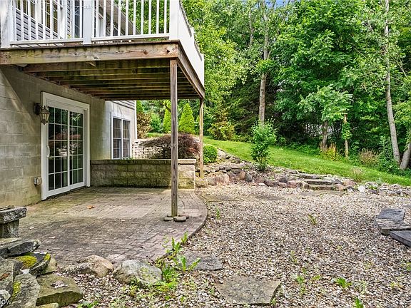 Well maintained home in desirable Deerfield Sub w/entrance to Sofios Park! Custom built, this home backs to woods in a cul-de-sac! Beautiful views of the wooded rear yard when you enter this home and through the great room with wood blinds, carpet, and a double French door to the composite deck. With gleaming hardwood flooring throughout the large foyer with a huge walk-in closet. The eat-in kitchen offers an L-shaped island with seating & pendant lighting, cherry cabinetry by Grabill w/dovetail drawers, granite counters, 2021 stainless range, microwave and dishwasher! A large pantry and laundry/utility room are off the kitchen with a utility tub. The washer and dryer will convey. The first of 3 full baths is off the foyer and guest bedroom with a walk-in shower! The primary suite offers carpet, a lighted fan, recessed lights and wood blinds. The ensuite features a tub/shower combo with a solid surface countertop/vanity. Headed to the walkout lower level with sliding door to the stampe
