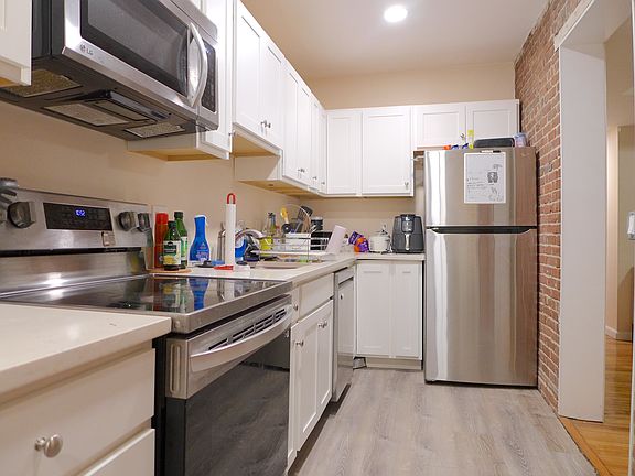 Parking for one car included! This stunning gut-renovated unit is located in a gorgeous brick building and features four bedrooms with ample closet space. The huge common area provides plenty of room to relax, while the contemporary kitchen showcases charming exposed brick, sleek granite countertops, and brand-new stainless steel appliances, including a dishwasher and disposal. Enjoy gleaming hardwood floors throughout, central air conditioning, and laundry in the building. Situated just steps from BUMC and a short distance from Northeastern University, this unit offers easy access to public transportation, making it a perfect city home!